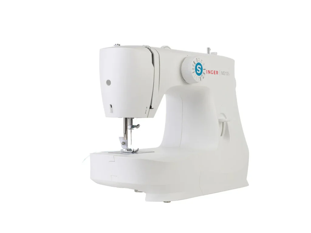 The SINGER® M2105 Sewing Machine is a model up from the M1505, with greater stitch selections. It is small, sleek and stylish and is perfect for smaller spaces or to transport to sewing classes.